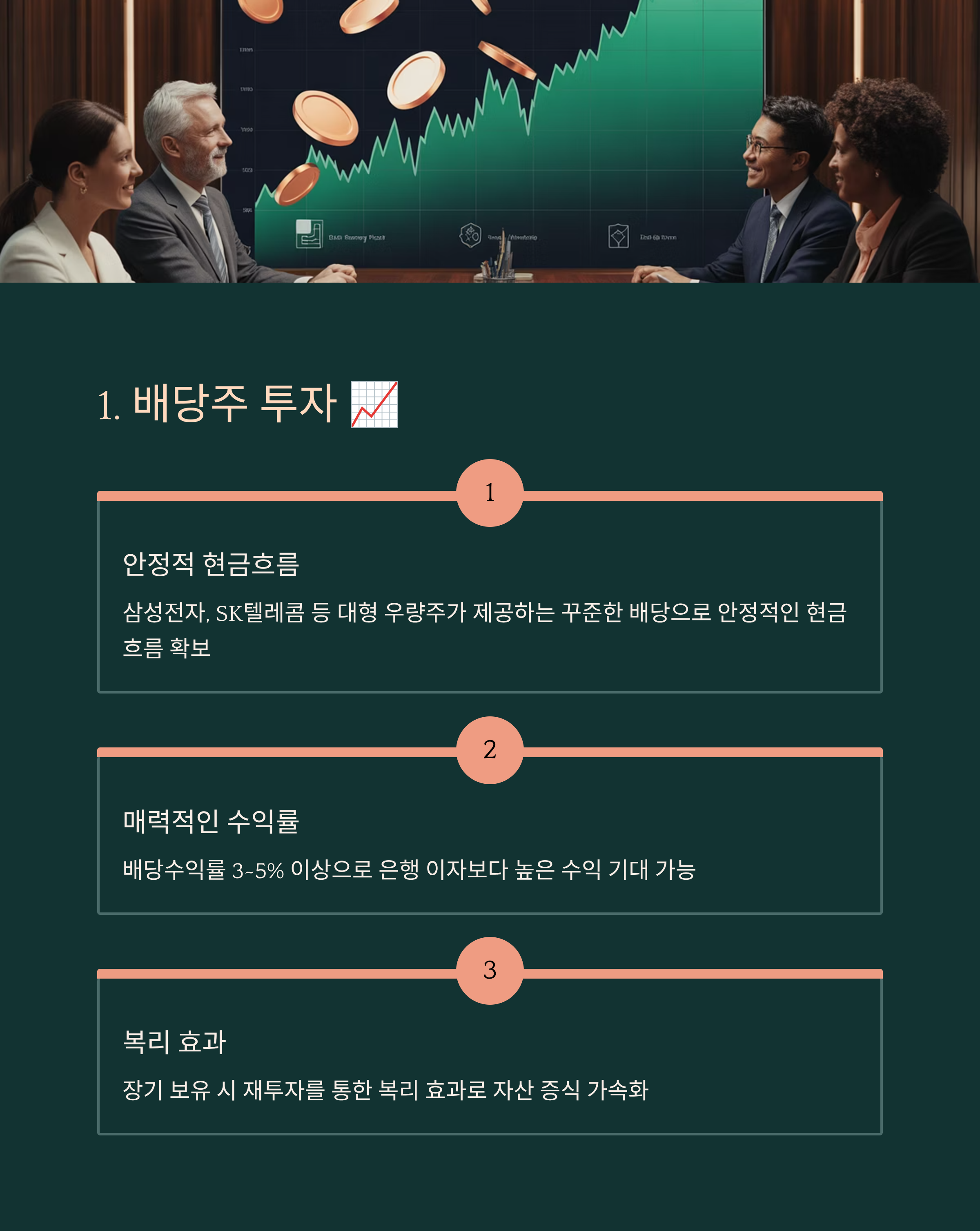 한국에서도 SK텔레콤, KT&G, 포스코홀딩스 같은 기업들이 안정적인 배당률을 자랑해요. 평균적으로 연 5~7% 배당수익률을 주는 종목에 주가 상승까지 더해지면 10% 수익도 가능하답니다.
