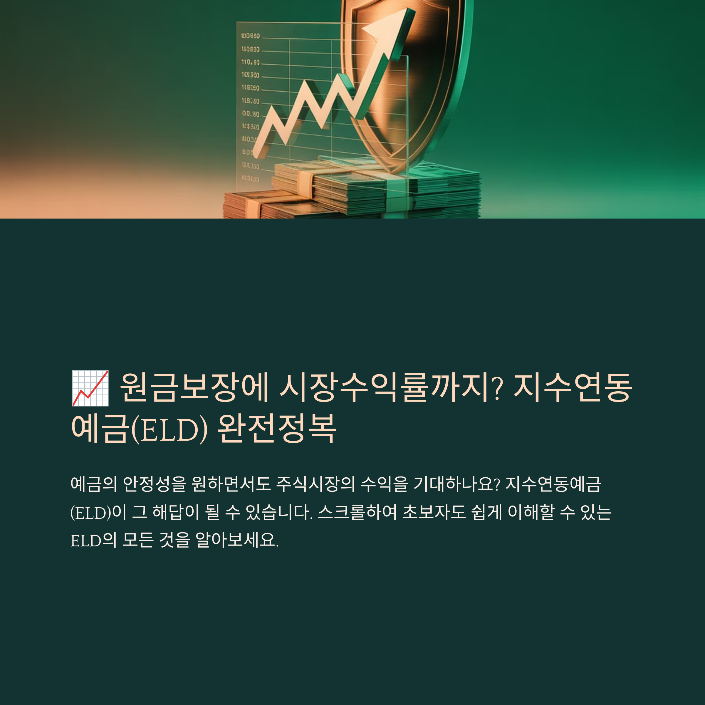 요즘엔 환경, AI, ESG 테마나 글로벌 인덱스와 연동된 ELD도 많이 나오고 있어요. 예금자 보호법 적용 상품이기 때문에, 1인당 5천만 원 한도로 보장도 받는 점은 매우 매력적이에요. 그래서 목돈 운용의 대안으로도 각광받고 있죠.